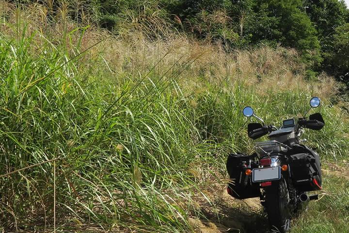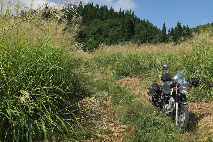 CB400ss-TMのトラディショナルなスタイルは秋の景色に溶け込むようで違和感も無く、秋祭りの幟と色づいた稲穂の日本の原風景を眺め、脇道へ入り込んだススキの原っぱでは簡単には出られなくなりそうで大慌てしたが、それもCB400ss-TMによる道草の面白さかな。