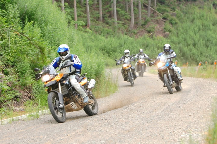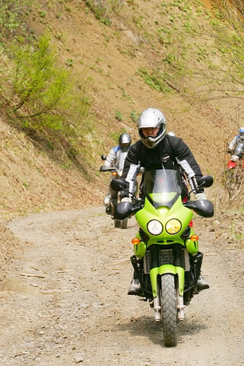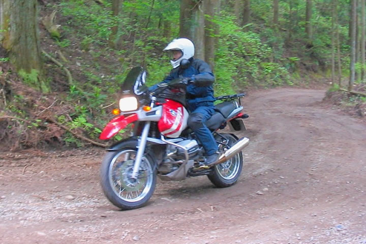 それは、R1100GSで林道をヨタヨタと走ることでも、SL230のトレッキングごっこにも似たアクセルワークとステップワークが連動した操作で、ガレた林道でも巨大なR1100GSが右でも左でも安定して進み始めたのは驚きだった。